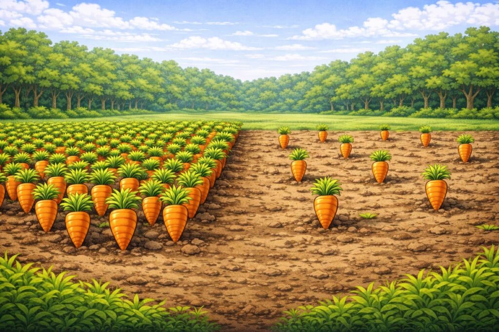 Jednog jutra Zbrčkani zeko otkriva da njegov vrt više ne izgleda kao prije. Mrkve su posvuda – neke rastu u redovima, neke su same, a neke su se čak otkotrljale po zemlji! Čini se da je sinoćnja čarolija malo… pošla po zlu.